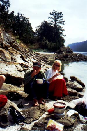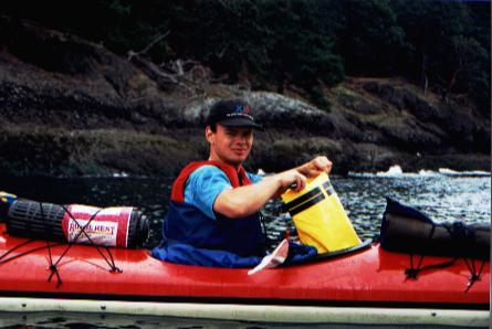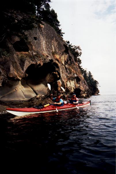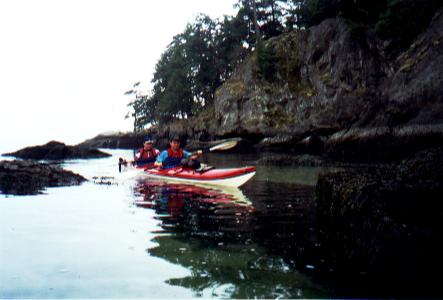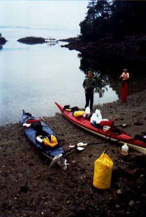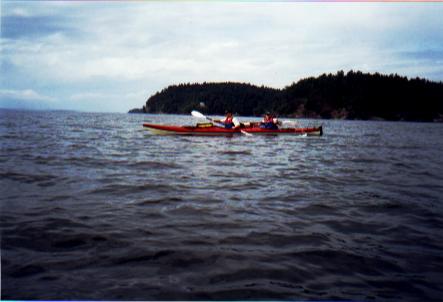 The Gulf Islands hittar du ungefär mellan Victoria och Vancouver (ovanför Seattle). Se karta. Vi (Johanna Isaksson, Daniel Karlsson, Daniel Björkman och Jag) befinner nu oss på ön Galianos västsida. Med en stor nypa tur lyckades vi hitta kajakuthyrningen och dessutom få hyra två tvåmanskajaker. Kajakerna packas på bryggan varefter man mha "The Heman Thing" hastigt sjösätter kajaken.