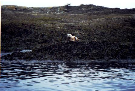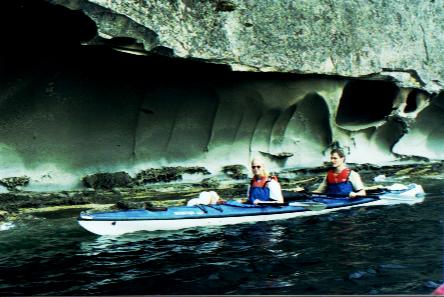 Nära-stranden-paddling är kul. Det är en speciell känsla i att slicka klipporna... speciellt i så här Kelp-fritt vatten. Kelp är alltså en stor -eller snarare lång- alg som vanligtvis sitter fast i botten och växer sig många meter långa för att nå ytan. Tydligen har de problem med bottenfästet i de starka tidvattensströmmarna, varför de med tiden samlas utefter stränderna.