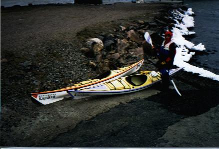 Det blåste hyfsat friskt och temperaturen var väl några grader under nollsträcket när Patrick Ribbing och Jag hoppade i Caribou-kajakerna. Det tog väl inte