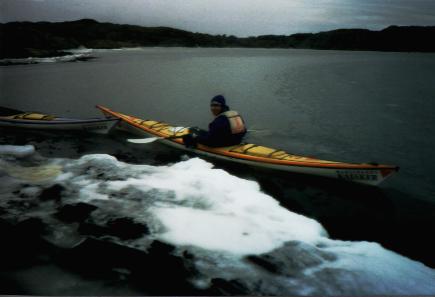 Rejdar (Marstrands Kajaker) lyckades tillslut hitta en isfri sjösättningsplats där vinden inte låg på alltför hårt.