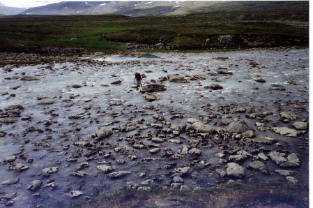 Samiska Svenska Jåkka å, bäck, mindre å Kätje ände, slut Kiebne kittel Kaise brant högfjäll Tjåkka fjälltopp Vagge dal, stor dalgång Jaure sjö Unna liten Stuorre stor Vara berg Vuolle nedre Tjårro bergsrygg Ätno älv Kårtje vattenfall Valle utskjutande fjällrygg mot öster Nuort norra Årje södra Varto lågfjäll, utsiktshöjd Tjakke fjäll kaite platå ? Vaja honren Sarv hanren Härk kastrerad hanren I samiskan finns mer än hundra ord för att beskriva snön! De anger snömängden, snöns konsistens, dess bärighet, snöytan, olika slags skid- och slädföre, det orörda snötäcket, spår av olika slag, rimfrost och snö på buskar och träd. Orden innefattar också barmarksfläckar, snösmältning och snöfläckar på sommaren. Här hittar du mera att läsa om Samerna.