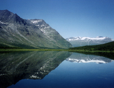 Utsikten ifrån Niak - 1922 m.ö.h. I bakgrunden skymtar Akkamassivet.