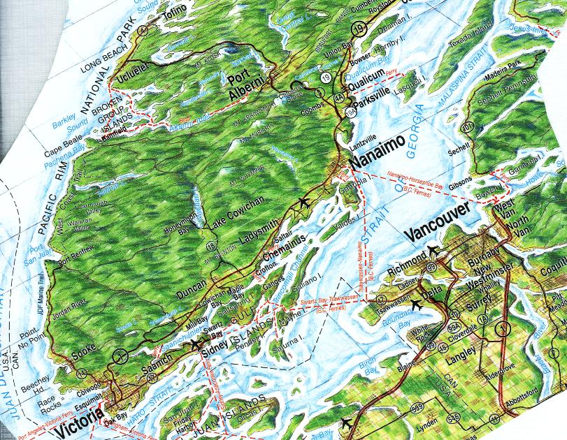 Här följer en bildserie ifrån en mycket speciell och grymt vacker vandring utefter Kanadas västkust. Om du önskar en överblick av området så titta på följande karta. Området ligger grovt sett lite norr om Seattle och väster om Vancouver. (Bilden ovan är ifrån ett vykort)