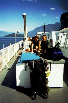 Här är vandringskompisarna: Tobben och Elinor! BC Ferries tar oss ifrån Horseshoe Bay (Vancouver) på fastlandet till Nanaimo på Vancouver Island.