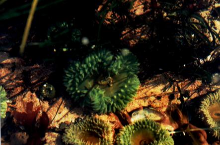 Eftersom Stilla Havet har ganska kraftiga tidvattensförändringar här, så uppstår det massvis av "tidepools". I dessa tidvattenspölar kryllar det av liv! Green Anemones är intressanta att pilla på ... med en pinne...