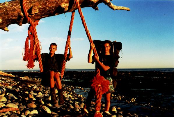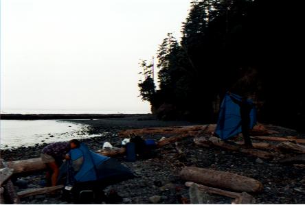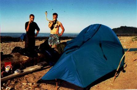 En av tältplatserna på stranden. Det gällde att vara noga med placeringen av tältet - i höjdled alltså. Inte kul att mitt i natten väckas av de kalla vågorna. Vattnet är kallt eftersom strömmarna som de har här på västkusten kommer ifrån Alaskatrakten. Det är ju först i södra Kalifornien det börjar bli varmt i vattnet...