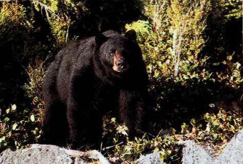 (Hehe, jo - ytterligare ett vykort) Stoffe var ute och spatserade i trakterna av tältplatsen. Nu var vi inne i ett Indianreservat dessutom. Jag tittade ut över en tidvattens-älv och där - en bjjöörrrrn! Wow, jag skuttade genast bakom en sten (för att inte skrämma björnen :-) och tittade på hur mäktigt den lunkade fram utefter stranden... Näe, nog var jag glad att det fanns vatten i mellan Nallen och lilla Stoffe.