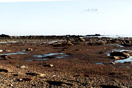 Vissa delar av tidvattens-zonen var helt täckta av antingen blåmusslor eller havstulpaner (Barnacles).