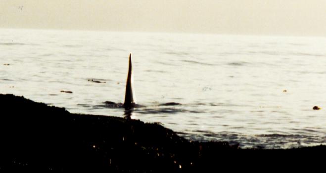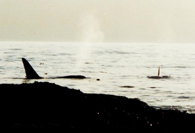 Här tog en av huggarna en säl... naturens gång antar jag. inte fick man lust att simma iallafall. Det finns, har det berättats för mig, två typer av späckhuggare. Den ena typen äter lax, den andra säl.