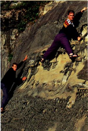 Sandalklättring på klippa med inbyggda klättergrepp!