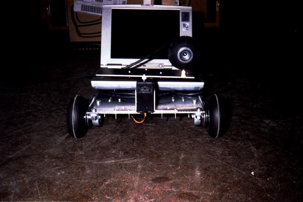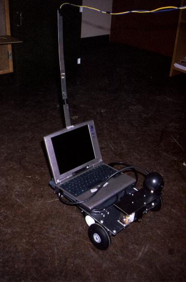 The PathFinder taking shots for a traning set of stereoscopic images. Only one camera mounted, so the vehicle was moved sideways between the two shots.